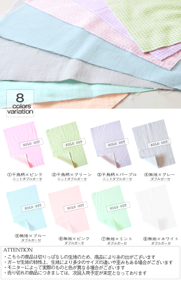 生産国 安心、安全の日本製 注意事項 モニターによって実際のものと色が異なる場合がございます 使用季節 取扱い方 ・こちらの商品はウィルスや花粉を完全にブロックするものではありません ・お肌に直接触れるものですので縫製後、必ず洗濯してからご使用くださいませ。