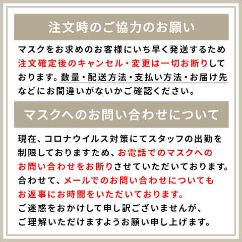 ) 当店で購入したマスクを転売すると処罰対象となる可能性があります。
